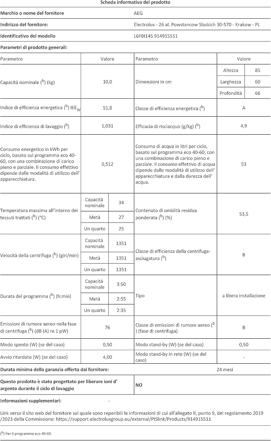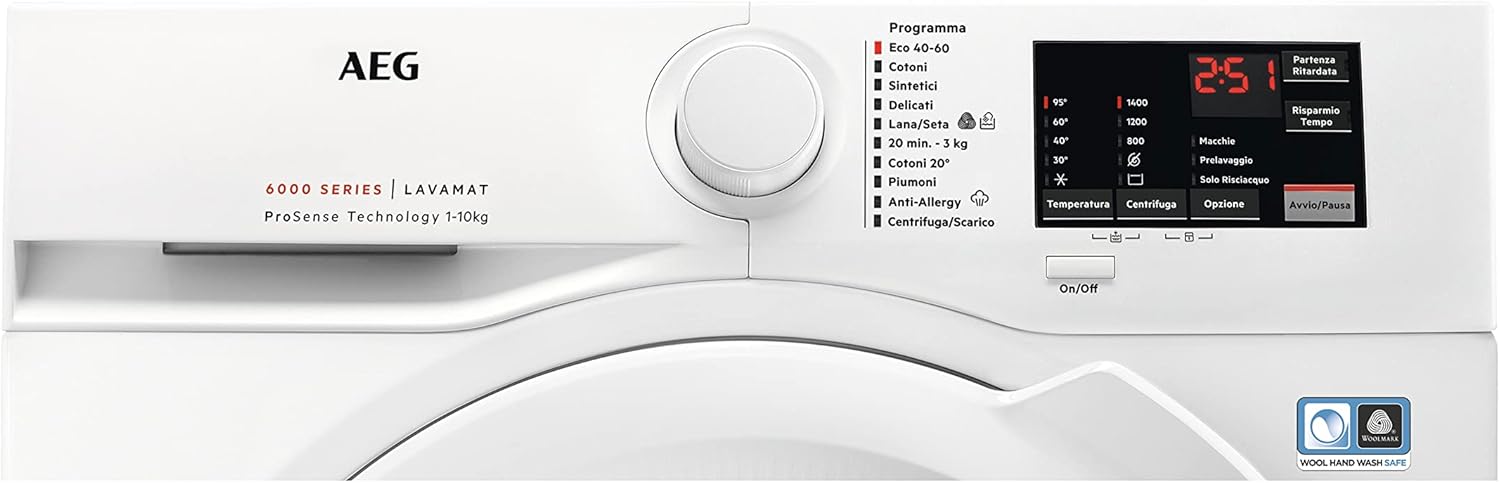 AEG Serie 6000 L6FBI145,Lavatrice 10 kg, Classe A, 1400 giri, Tecnologia ProSense, Programmi Rapidi, Display LCD, Motore OKOInverter
