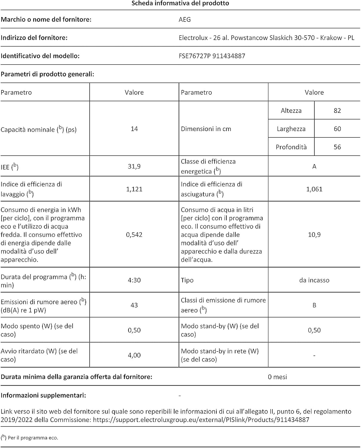 Consumo di acqua del programma eco in litri per ciclo (Regolamento (UE) 2017/1369): 10.9
