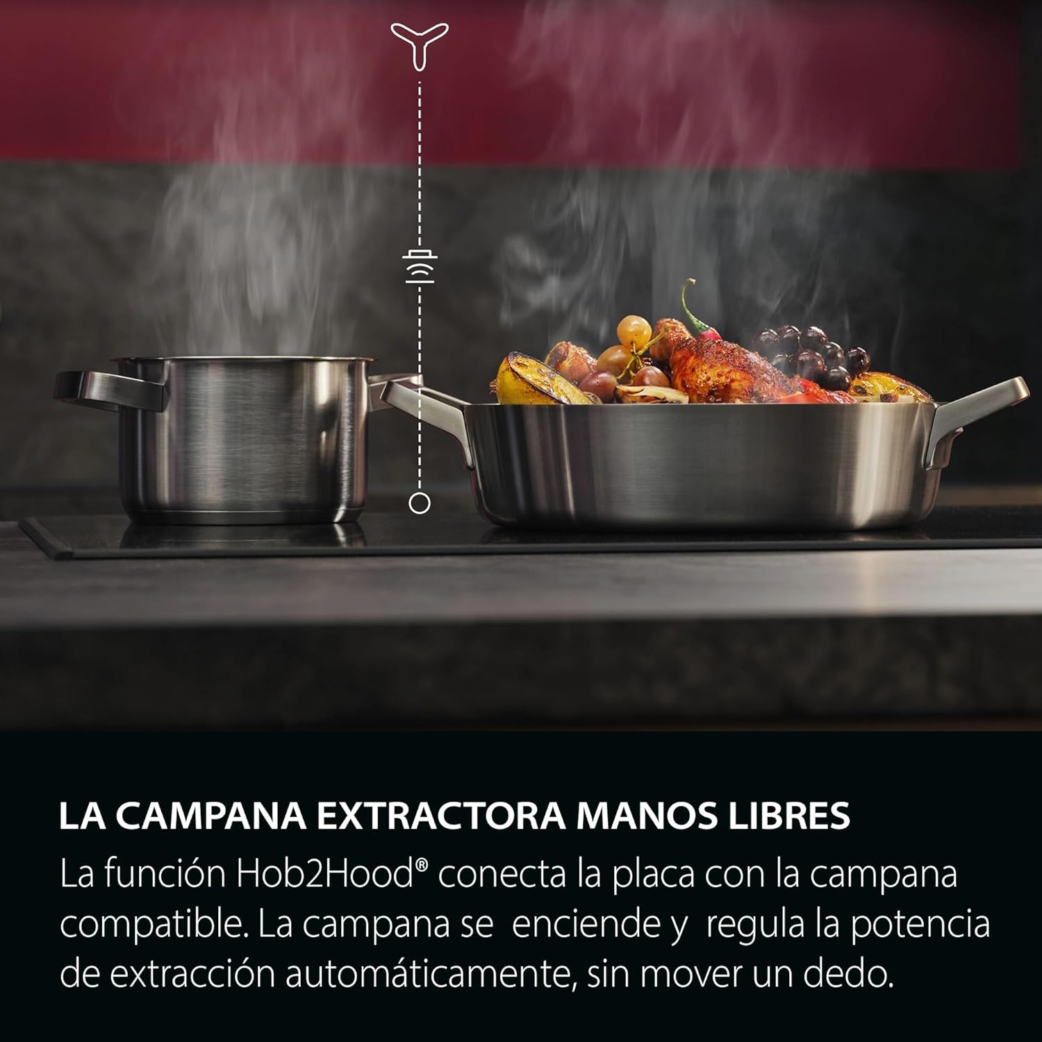 Integrazione intelligente con Hob2Hood. La connettività con una cappa compatibile permette la regolazione automatica dell’estrazione, lasciando mani libere e un ambiente sempre ottimale.