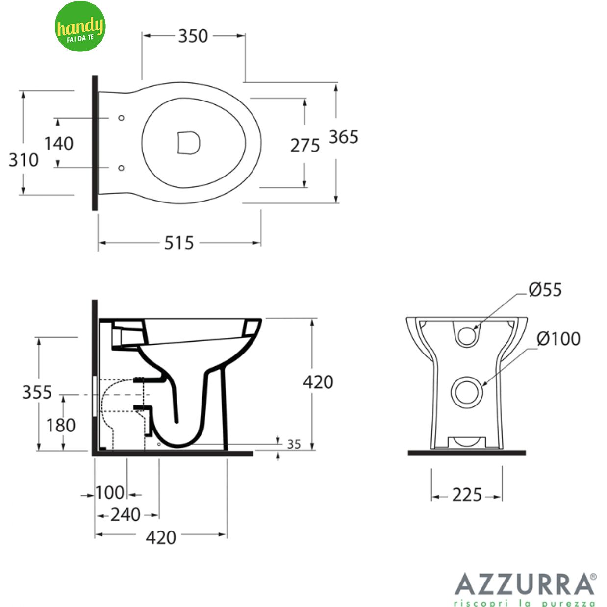 Azurra - FAS500B1 Vaso filo parete Azzurra fast