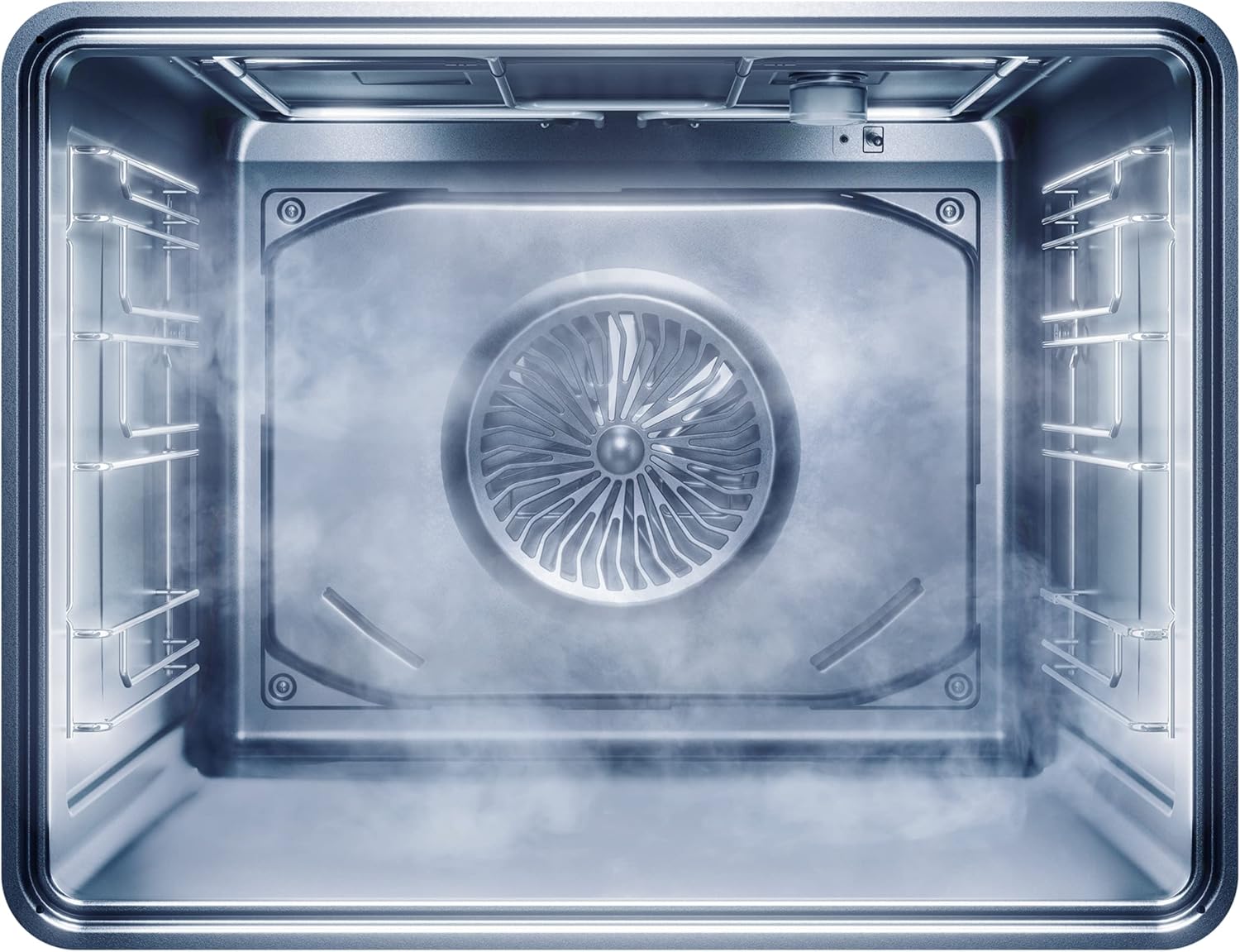 Vuoi sapere come sta andando il processo di cottura ma non vuoi perdere calore aprendo la porta? Grazie all'illuminazione alogena, puoi vedere l'intero interno del forno. Così puoi tenere d'occhio le tue creazioni culinarie anche quando la porta è chiusa.