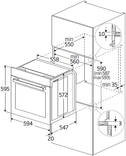 Dimensioni forno (Larghezza x Profondità x Altezza): 594x567x595mm