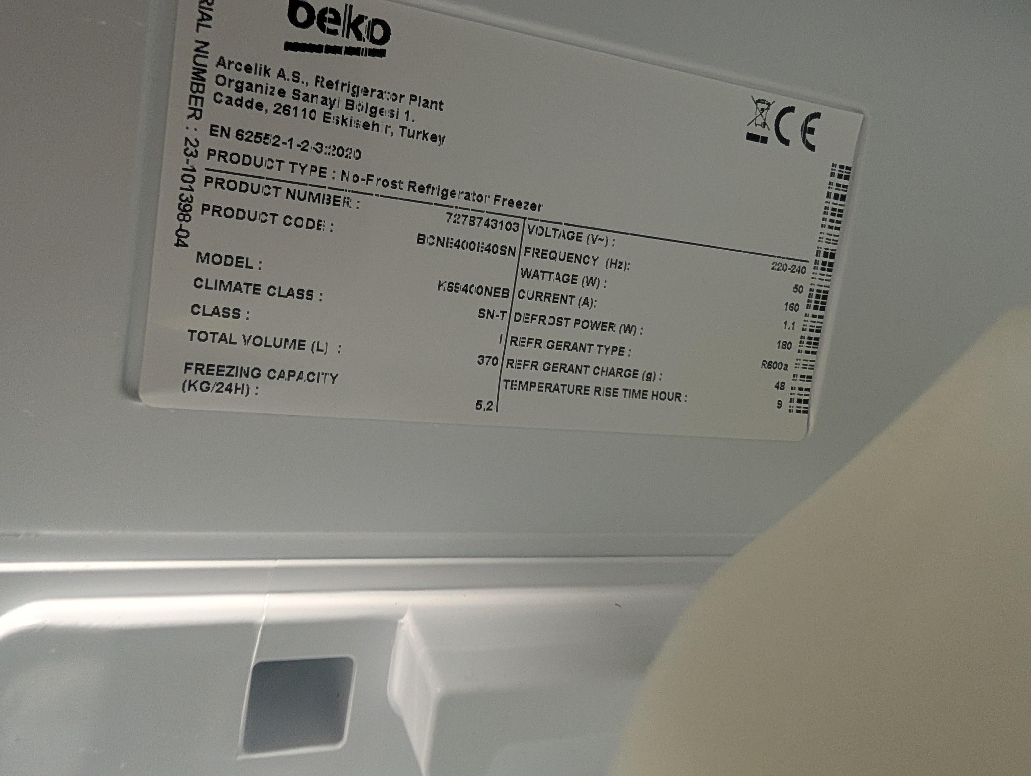 Beko BCNE400E40SN Frigorifero da incasso con congelatore cm. 75h. 193 - lt. 370 - bianco