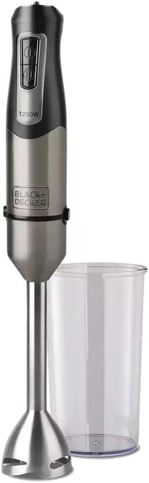 Black+Decker BXHB1200E - Frullatore a mano da 1200 W, 20 velocità e turbo, lame in acciaio inox a 4 tagli, antispruzzi, leggero ed ergonomico, senza BPA