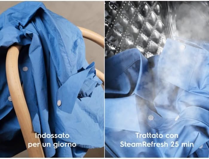 *Basato su test interno di consumo d’acqua confrontando Vapore Refresh con il programma di lavaggio completo Delicato utilizzando un carico di 1kg.