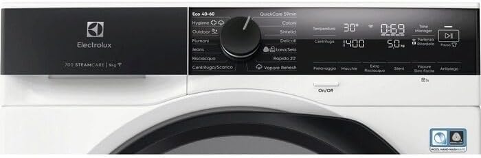 Programmi: Quickcare 69Min, Cotone, Sintetici, Delicati, Lana/Seta, Rapido 20 minuti, Vapore Refresh, Centrifuga / Scarico, Rinse, Jeans, Piumoni, Outdoor, Hygiene, Eco 40-60