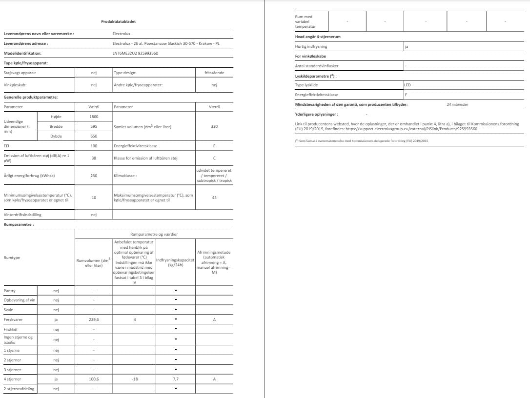 Volume scomparto frigorifero E20: 230 l