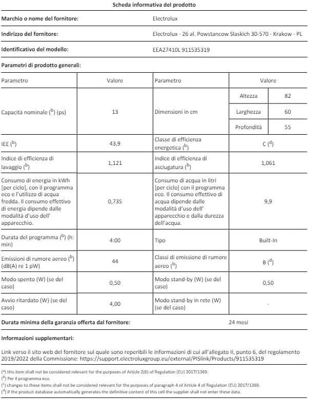 Indice di efficienza di lavaggio (UE 2017/1369) | 1,121 |