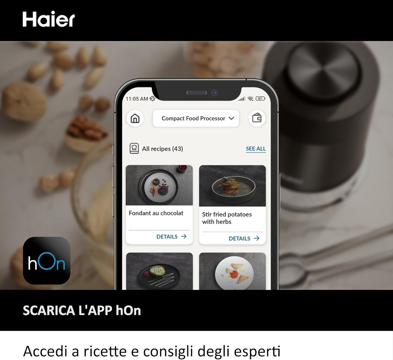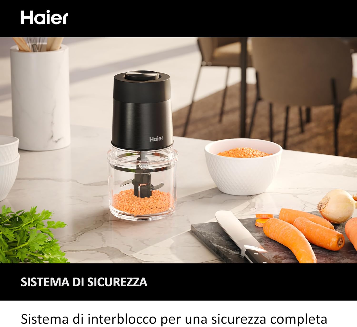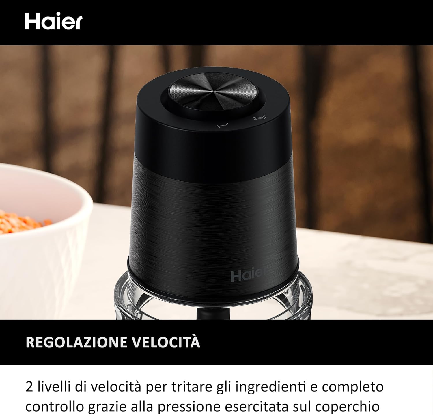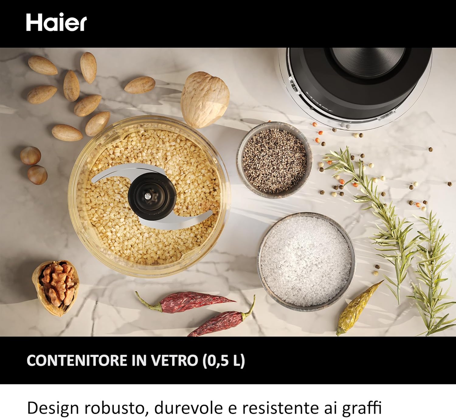 Haier HCH5B1 011 I-Master Serie 5 Tritatutto Elettrico Capacità 0.5 Litri Potenza 550 Watt 2 Velocità con 4 Lame Inox colore Nero