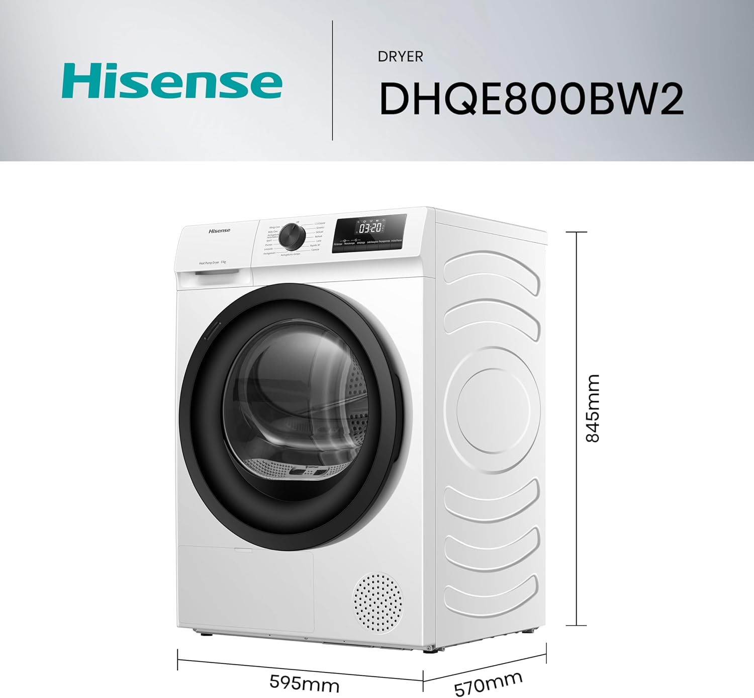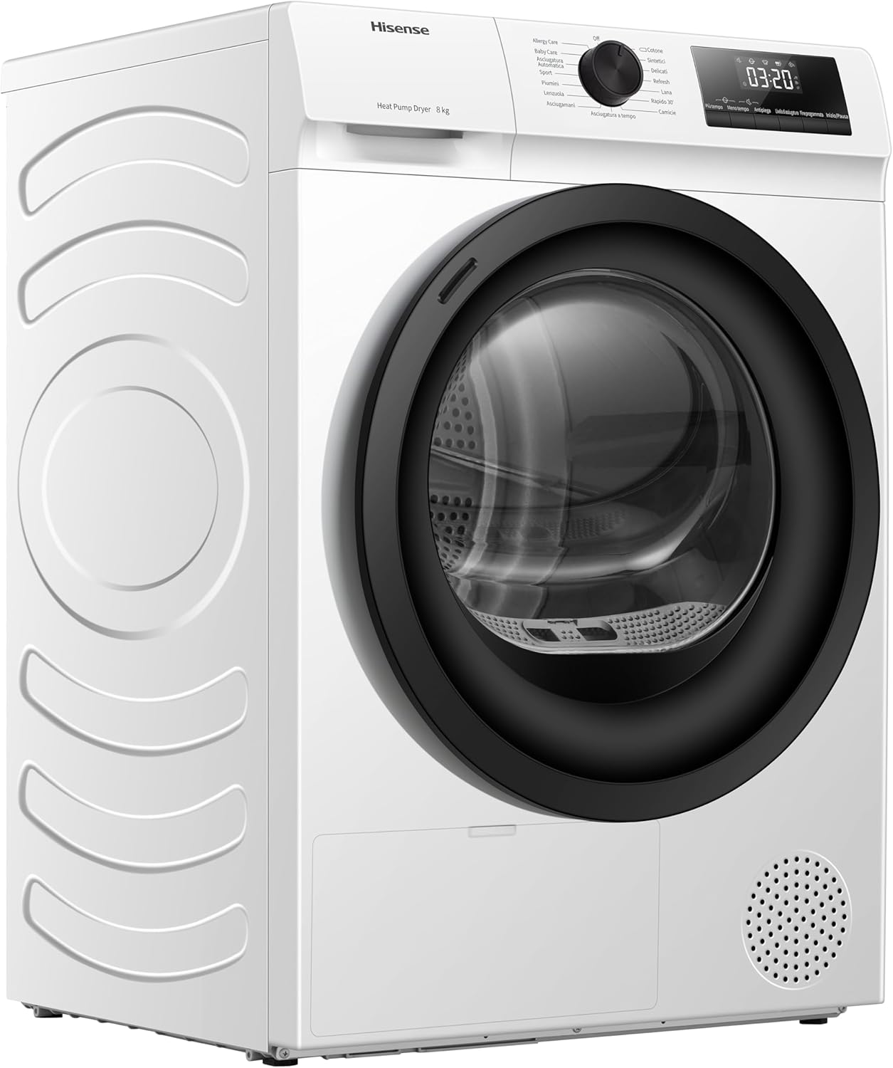 Hisense DHQE800BW2 Asciugatrice A Pompa Di Calore, 8 Kg, Classe D, Oblò Nero, Big Display, 16 programmi, Refresh