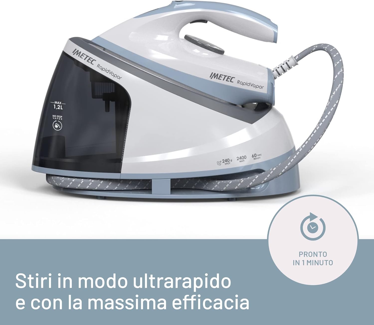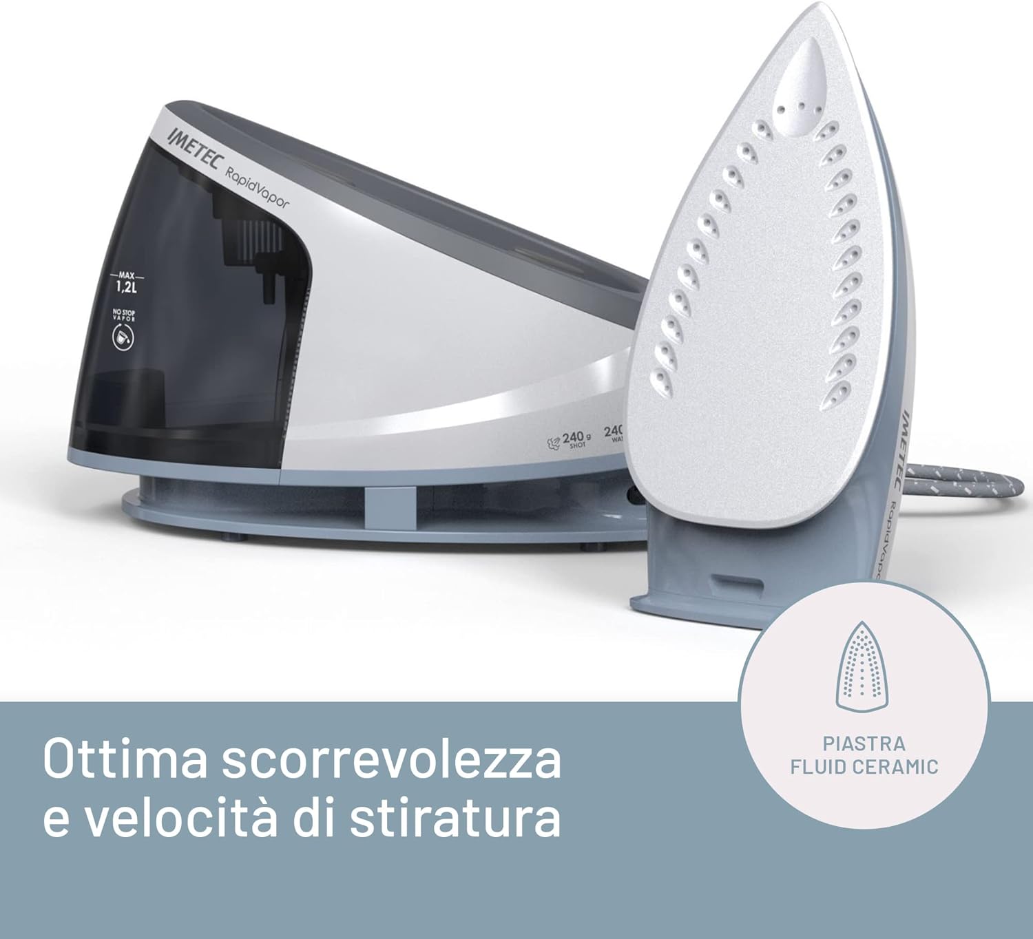 Imetec 9033 Rapidvapor Ferro da Stiro Generatore di Vapore, Piastra Fluid Ceramic a Rapido Riscaldamento, Leggero, Sistema di Pulizia Calc Clean, Colpo Vapore 240 g, 5 Bar Pump