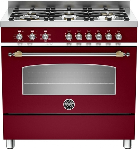 Bertazzoni HER906HYBSVIT Cucina libera Installazione, 90cm colore Rosso Vino, FORNO IBRIDO GAS-ELETTRICO
