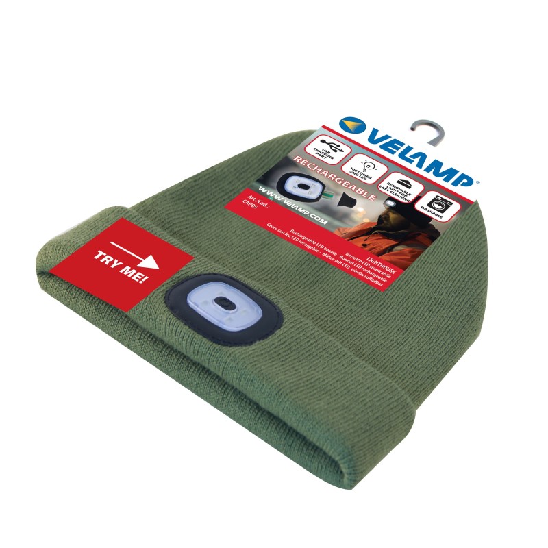 Velamp CAP05 Capellino con luce frontale led ricaricabile verde lighthouse ( scatola da 48 pezzi )