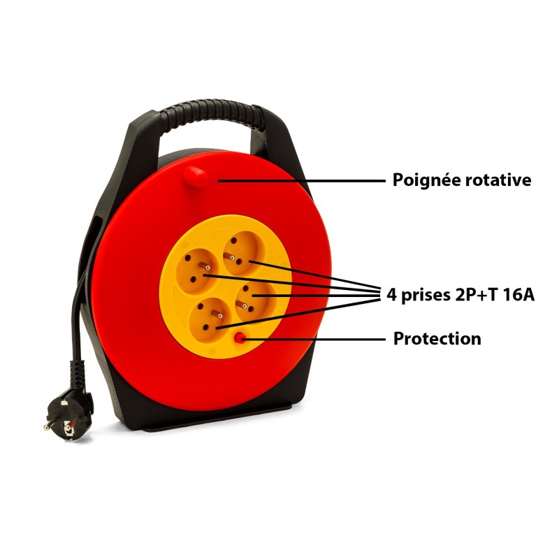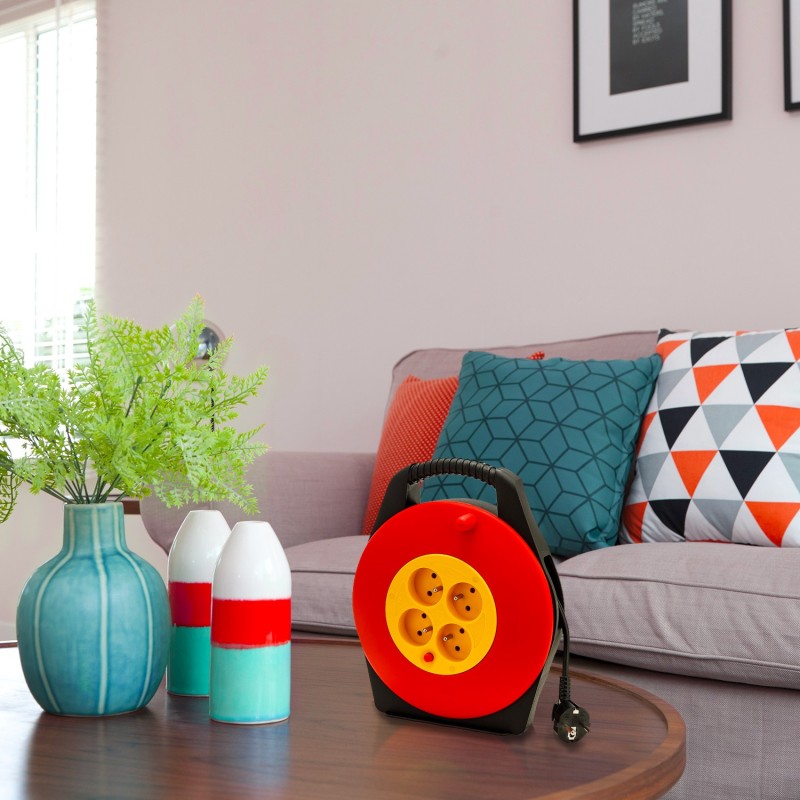 Velamp DOMREEL-10 Bobina di cavo domestico da 10 m H05VV-F3G1.0MM2, 4 prese 2P+E 16A, NF, CE
