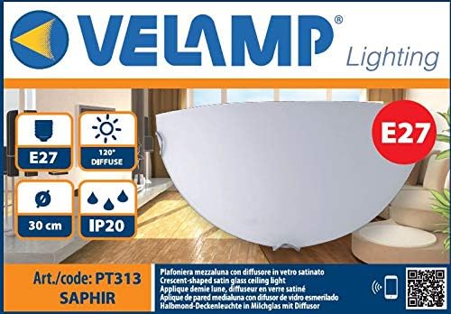 Velamp PT313 Plafoniera Velamp Half Moon in Vetro Satinato, Diametro 30cm