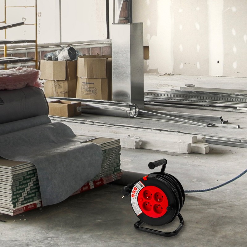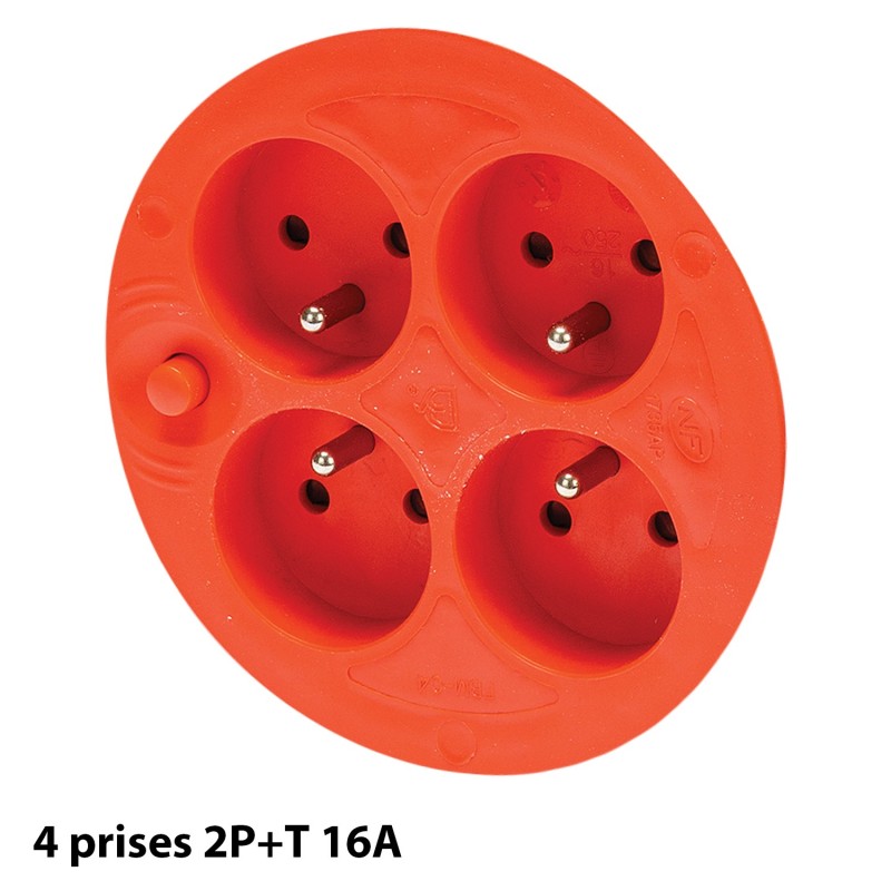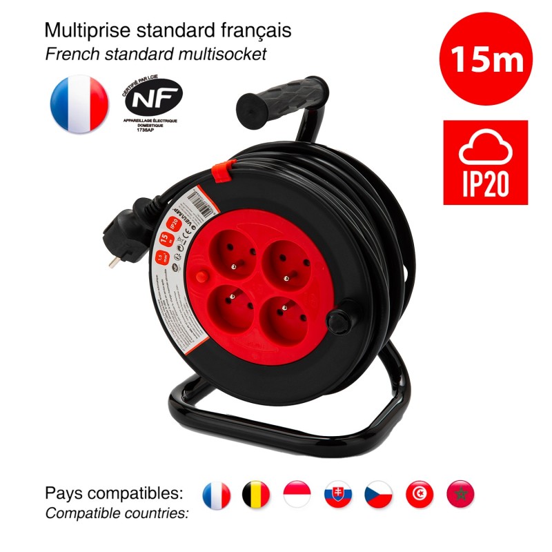 Velamp REEL-FR-15 Avvolgicavo elettrico fai-da-te, 4 prese francesi, H05VV-F3G1.5MM2, 15M, NF,CE