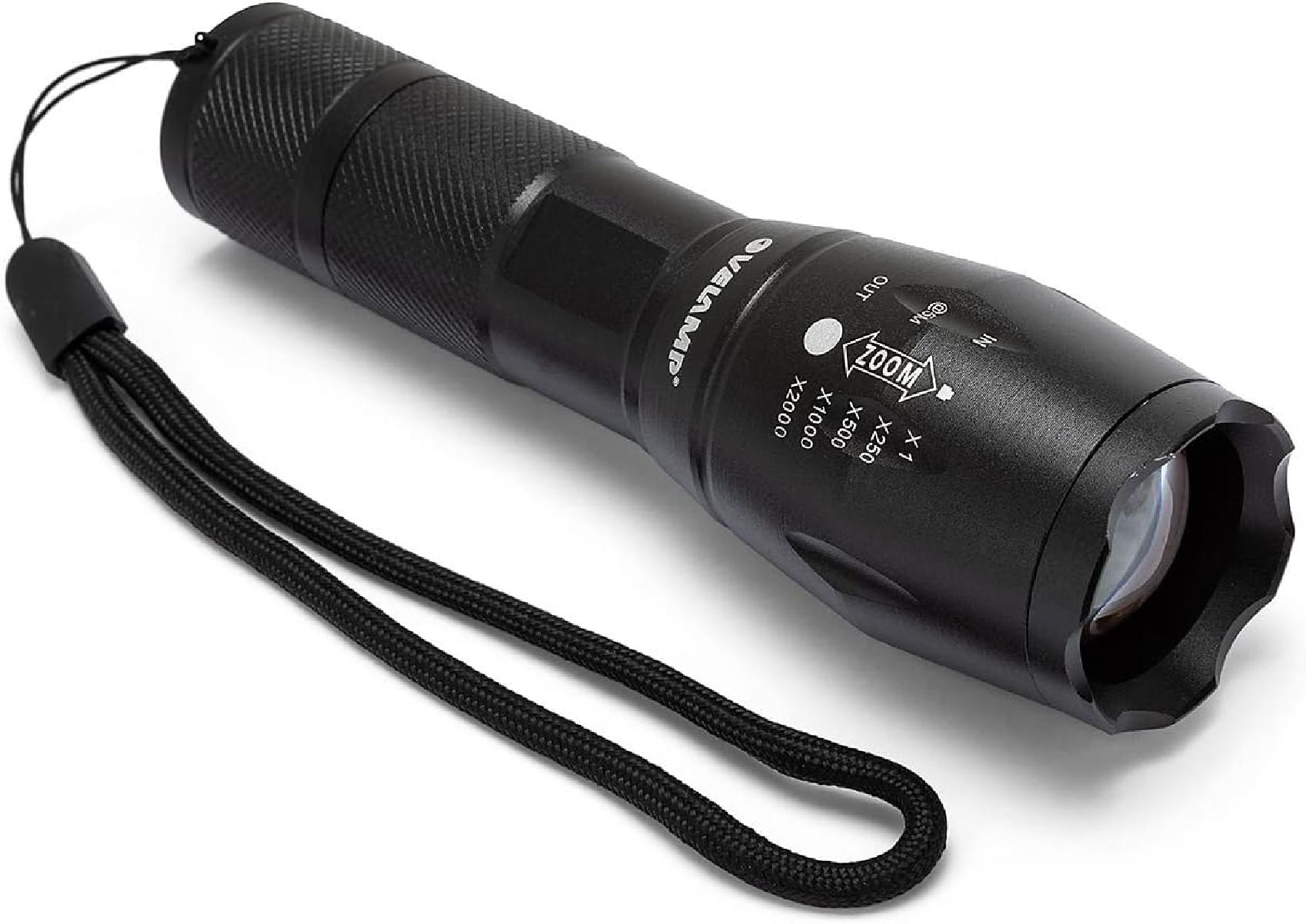 Velamp STEEL - Torcia LED potente – Impermeabile IP54 – Fascio luminoso regolabile con zoom- Interruttore tattico – Ideale per uso professionale ed all’aperto