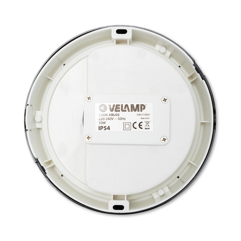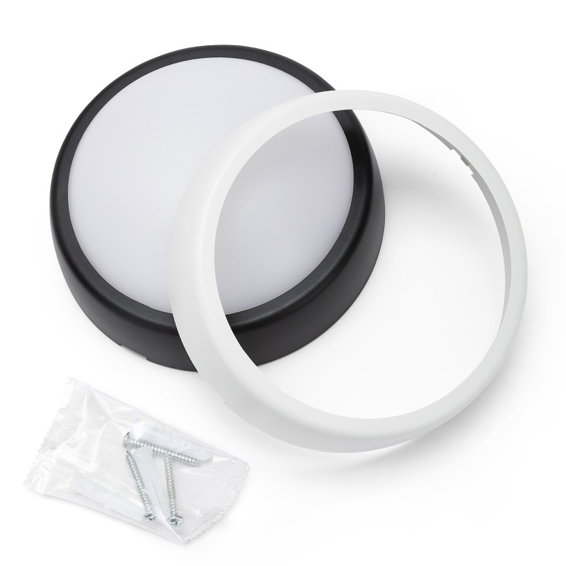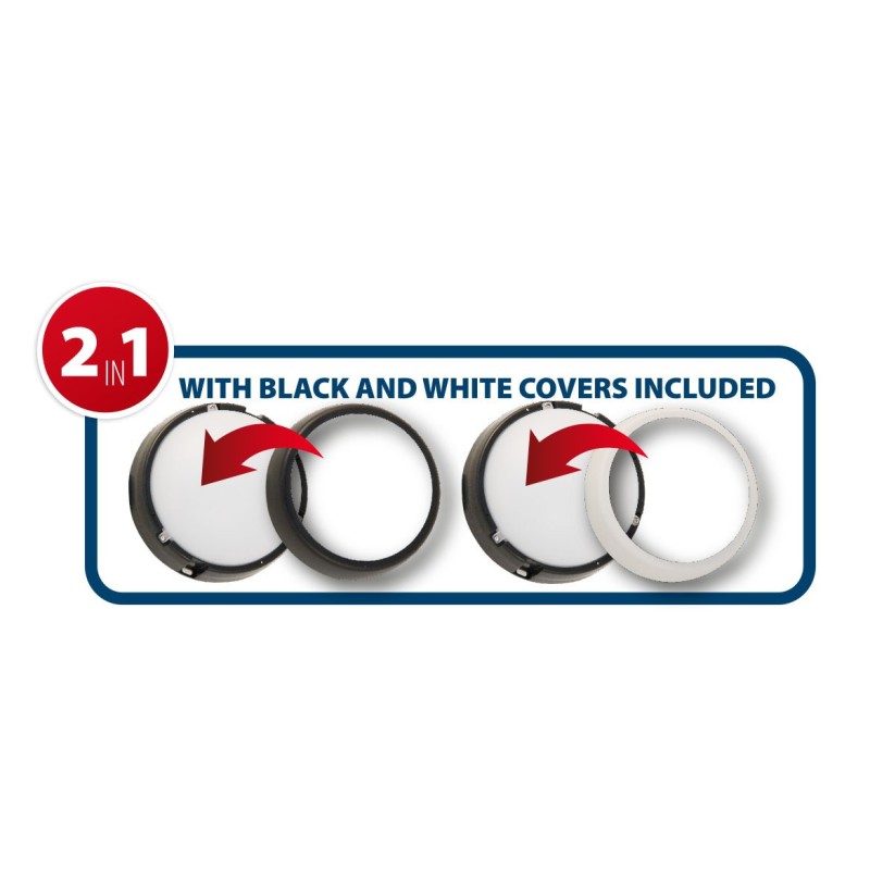 Velamp UBLO2 Plafoniera LED impermeabile (IP54) – 700 lumen luce bianca naturale 4000K - Ideale per montaggio all’esterno – Doppia cornice intercambiabile bianca e nera